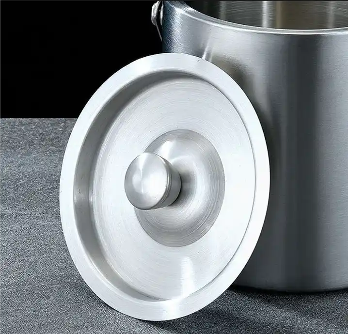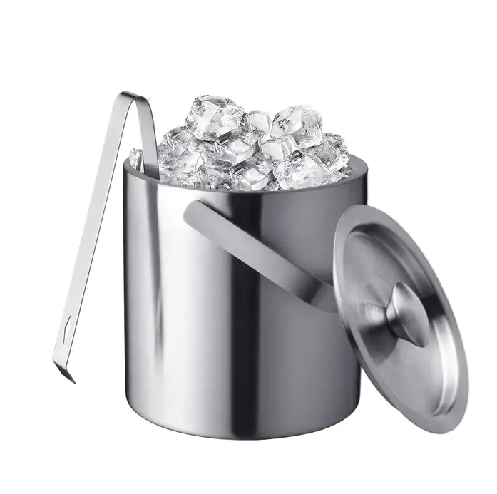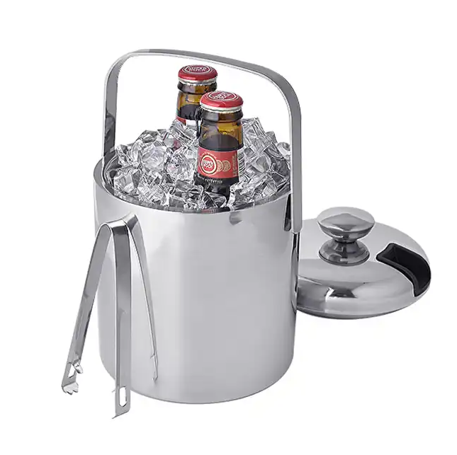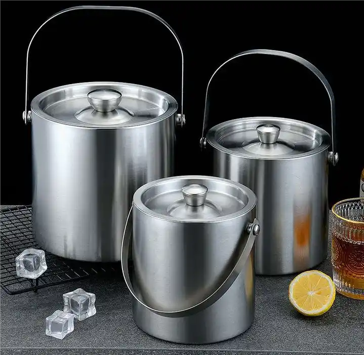 ถังน้ำแข็งโลหะสีเงินทันสมัยแบบมีฝาปิดและหูหิ้ว ถังน้ำแข็งพรีเมียมแบบเก็บความเย็นและอุปกรณ์ตกแต่งบ้าน ราคาถูกที่สุด