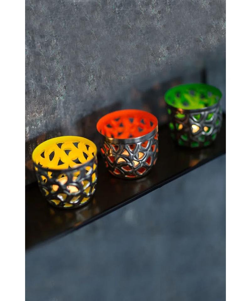 ที่ใส่เทียนโลหะสีเงินทันสมัย ดีไซน์ฉลุลายสีเขียวนีออน ตกแต่งภายในแบบร่วมสมัย ผิวสัมผัสแบบขัดเงา สีนิกเกิล สำหรับคริสต์มาส เป็นมิตรกับสิ่งแวดล้อม ทนความร้อน