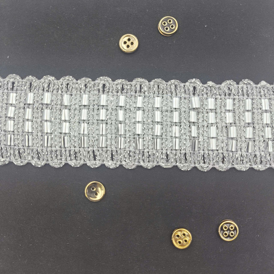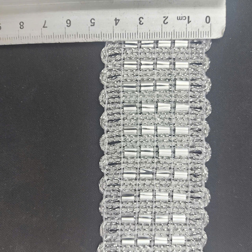 ลูกปัดโลหะสีเงินแบบโมเดิร์น แต่งขอบด้วยลูกปัดทรงแตร ความกว้าง 4.5 ซม. สไตล์หรูหราสำหรับชุดแฟชั่น