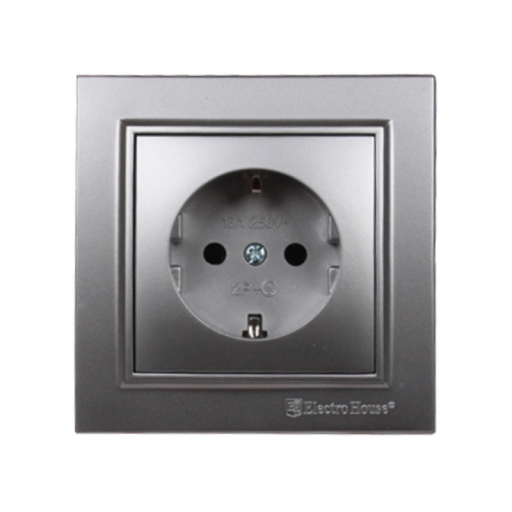 เต้ารับไฟฟ้าติดผนัง220V IP22หินสีเงินทันสมัยพร้อมสายดิน ABS พลาสติกทองแดงมาตรฐานอียูสหราชอาณาจักร