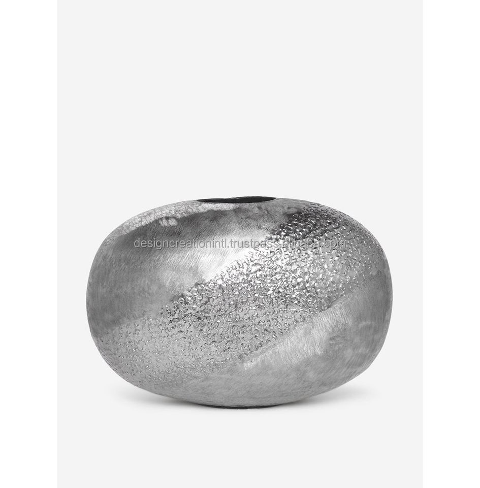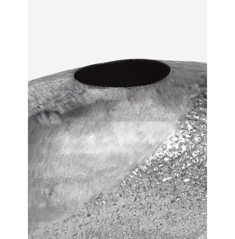 แจกันโลหะพื้นผิวสีเงินสมัยใหม่สําหรับตกแต่งบ้านด้วยแจกันโต๊ะสมัยใหม่ชุบนิกเกิลเงินสําเร็จรูปและแจกันดอกไม้