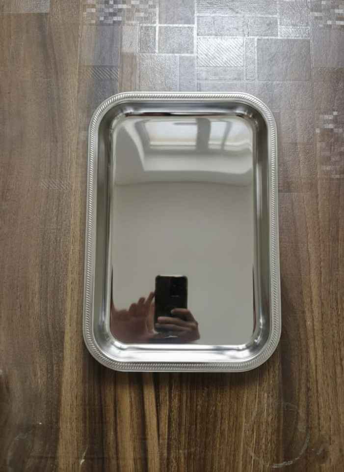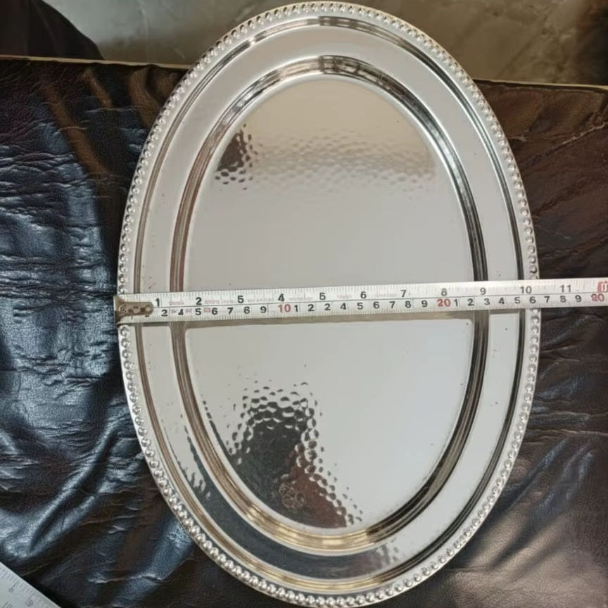 ถาดสเตนเลสสตีลสีเงินแบบพรีเมี่ยมถาดเสิร์ฟอาหารดีไซน์ปลอดภัยห้องครัวงานแต่งงานร้านอาหาร
