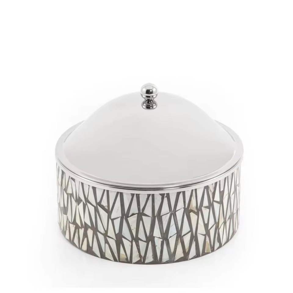 โถใส่ขนมรูปทรงสามเหลี่ยมสีเงินทันสมัย ฝาโดมหรูหรา สำหรับเสิร์ฟในเดือนรอมฎอน ของตกแต่งโต๊ะอิสลามในวันอีด ใส่ขนมหรือช็อกโกแลต