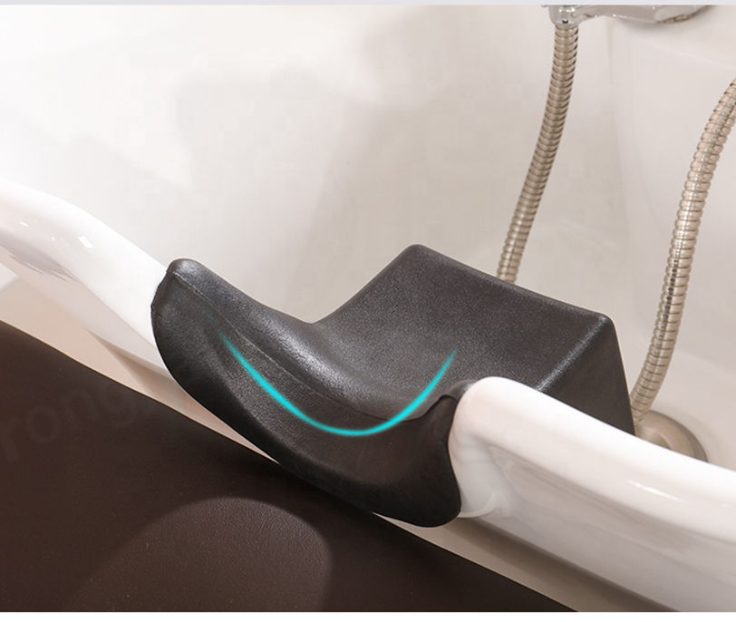 เก้าอี้อาบน้ำร้านตัดผมสีน้ำตาลแบบเรียบง่ายทันสมัยเก้าอี้เหล็กสปาหัวเตียงแชมพู