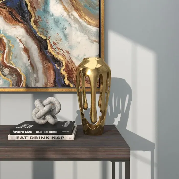 โมเดิร์น Creative แจกันดอกไม้สีทองคลาสสิกตกแต่งห้องนั่งเล่นแจกันโลหะ