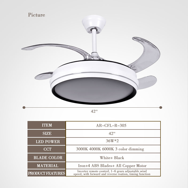 ชื่อผลิตภัณฑ์:พัดลมเพดานแบบยืดหดได้พร้อมไฟ