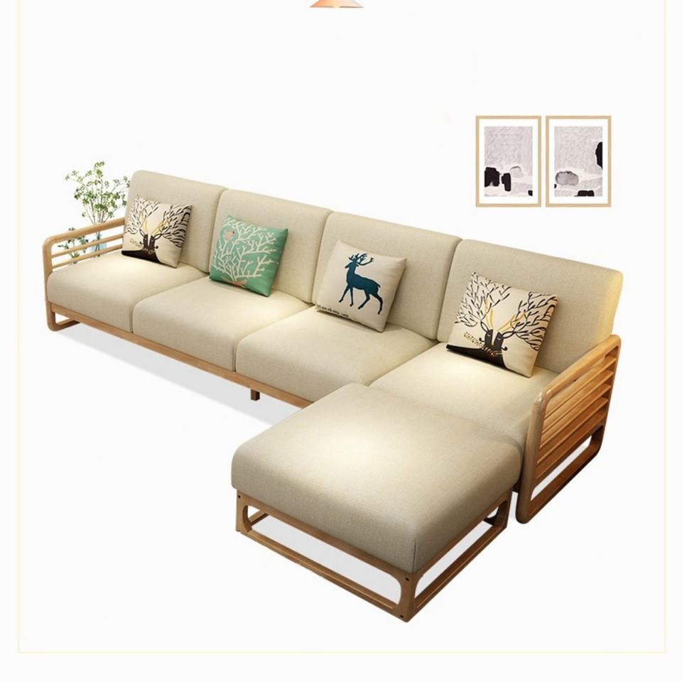 ชุดโซฟาผ้าหุ้มโครงไม้รูปตัวแอล ดีไซน์ทันสมัย เรียบง่าย สำหรับห้องนั่งเล่นหรือสำนักงาน