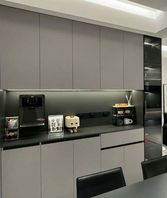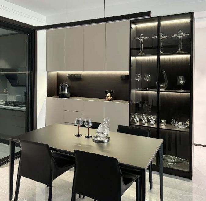 ตู้ไม้เนื้อแข็งหรูหราทันสมัยตู้ติดผนังแบบบูรณาการที่เก็บไวน์โรงแรมห้องรับประทานอาหารห้องนั่งเล่น