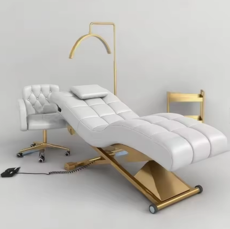 เตียงต่อขนตาไฟฟ้าแบบโค้งหรูหรา ชุดเฟอร์นิเจอร์ร้านเสริมสวย เตียงปักขนตาสำหรับงานเสริมความงาม