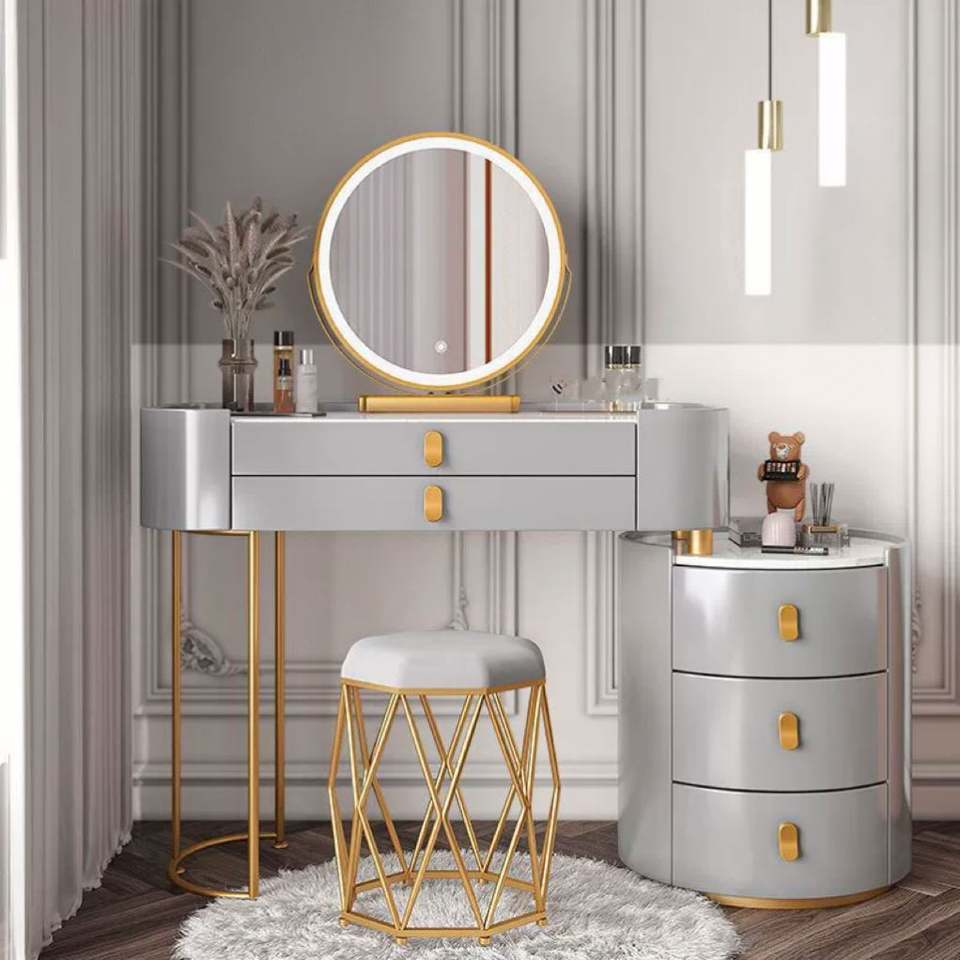 โต๊ะเครื่องแป้งอัจฉริยะทันสมัยพร้อมกระจก ตู้ข้างเตียงอเนกประสงค์สไตล์เจ้าหญิง สำหรับห้องนอน ห้องน้ำ และห้องนั่งเล่น