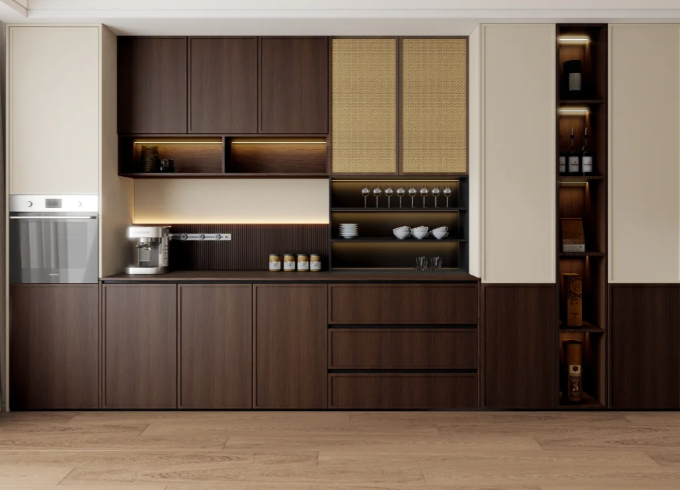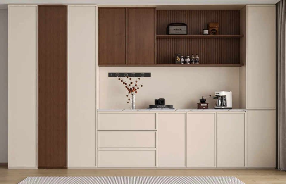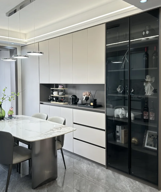 ตู้ไซด์บอร์ดไม้จริงสไตล์โมเดิร์นเรียบง่าย ฮุ่ยปินจู ตู้เก็บไวน์สุดหรู ตู้ติดผนังแบบรวม ตู้เก็บของสำหรับห้องรับประทานอาหารและห้องนั่งเล่น