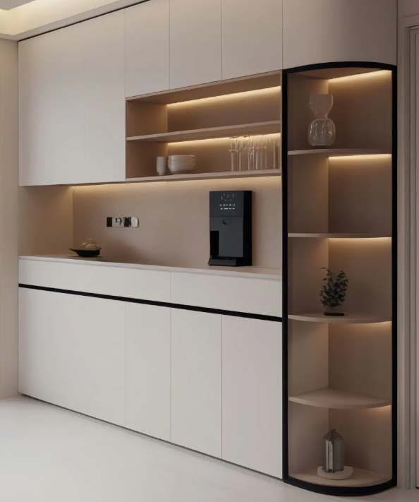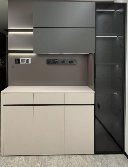 ตู้ไซด์บอร์ดไม้จริงทันสมัยเรียบหรู ตู้เก็บไวน์สุดหรู ตู้ติดผนังในตัว สำหรับห้องรับประทานอาหาร ห้องนั่งเล่น ยี่ห้อ Huipinju รับประกัน 5 ปี