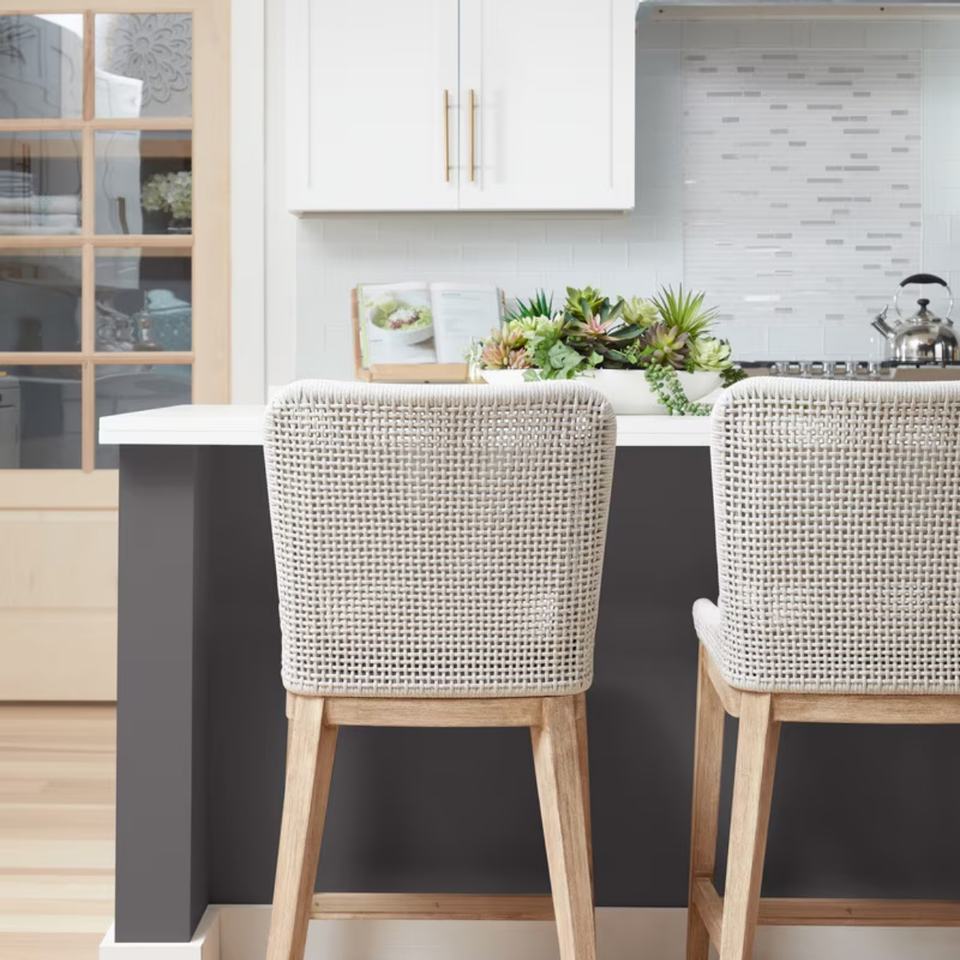เก้าอี้บาร์ทรงสูงสำหรับครัวสวนสไตล์โมเดิร์นเรียบง่าย ใช้ได้ทั้งภายนอกและภายใน ทำจากเชือกถักและไม้เนื้อแข็ง