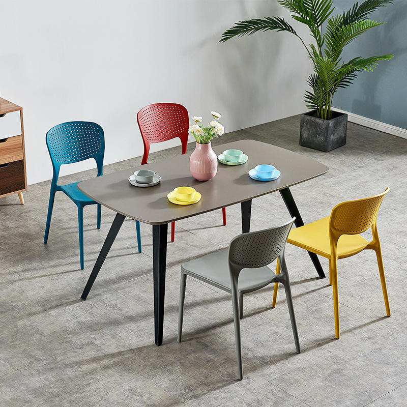 เก้าอี้พลาสติกหนาแบบเรียบง่ายสไตล์นอร์ดิกสำหรับโรงแรม เก้าอี้รับประทานอาหารกลางแจ้งแบบซ้อนได้สำหรับผู้ใหญ่ เก้าอี้มีพนักพิงสำหรับใช้ในบ้าน