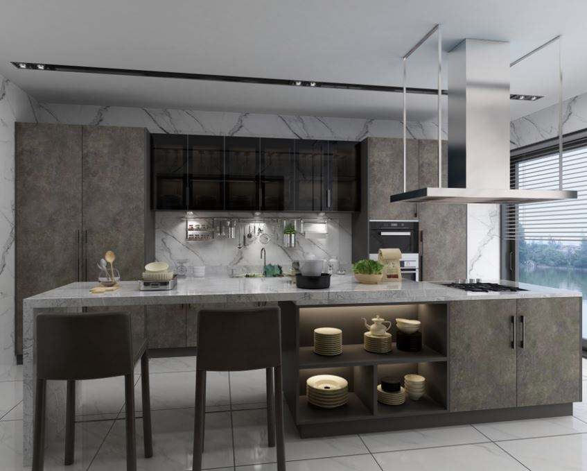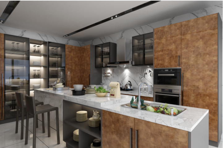ตู้ครัวไม้อัดทันสมัยแบบเรียบง่าย ขนาดสั่งทำได้ ออกแบบฟรี กันน้ำ เป็นมิตรกับสิ่งแวดล้อม ใช้งานได้หลากหลาย