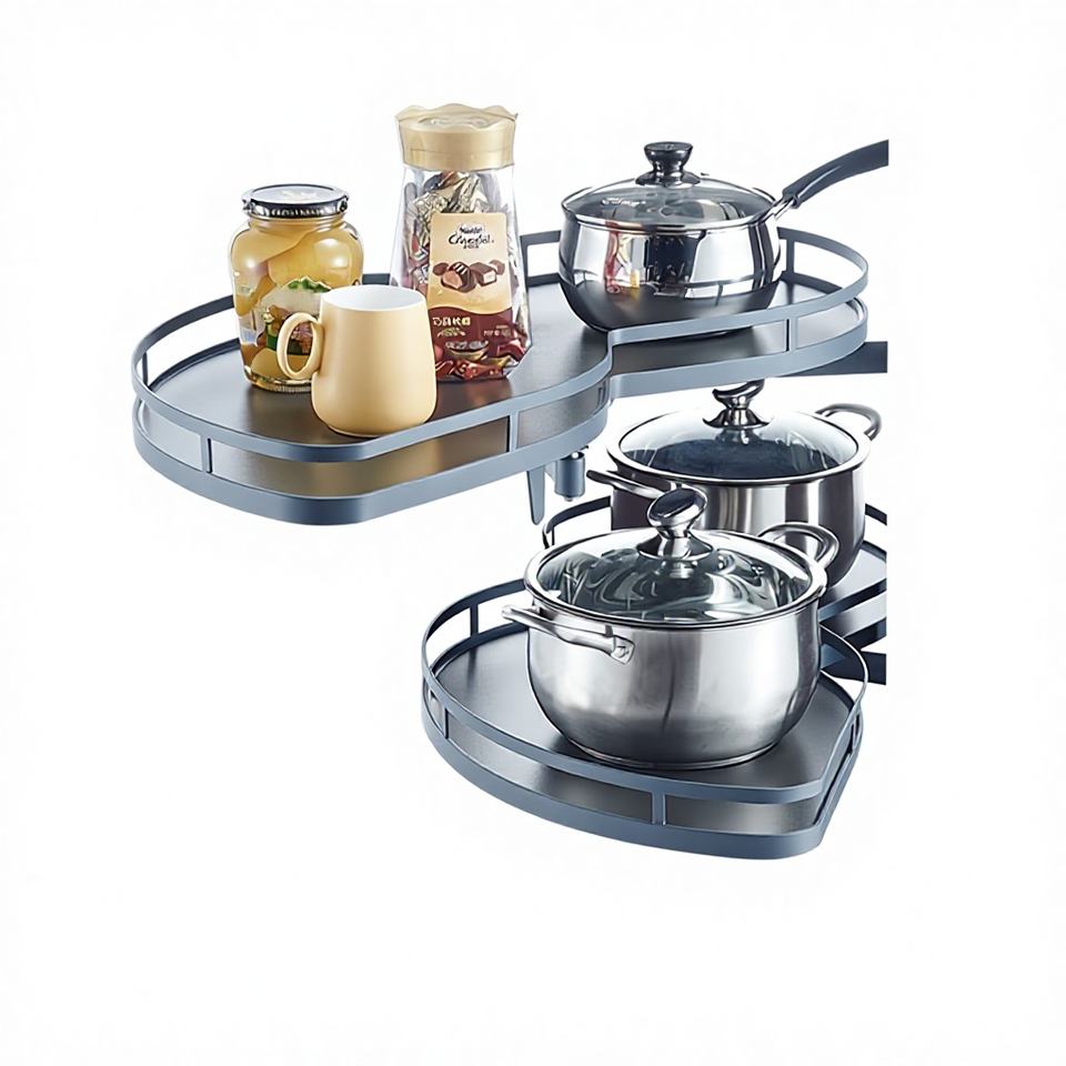 ตะกร้ามุมดีไซน์ยูเอฟโอทันสมัยสำหรับจัดเก็บในตู้ครัว พร้อมแผ่นกันลื่น