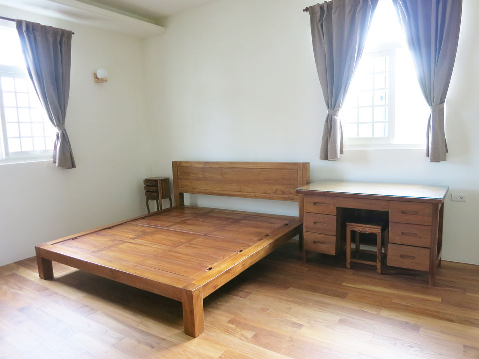 เตียงไม้สักขนาดคิงไซส์ สไตล์โมเดิร์นเรียบง่ายแบบนอร์ดิก พร้อมชุดแผ่นไม้สักสำหรับห้องนอน