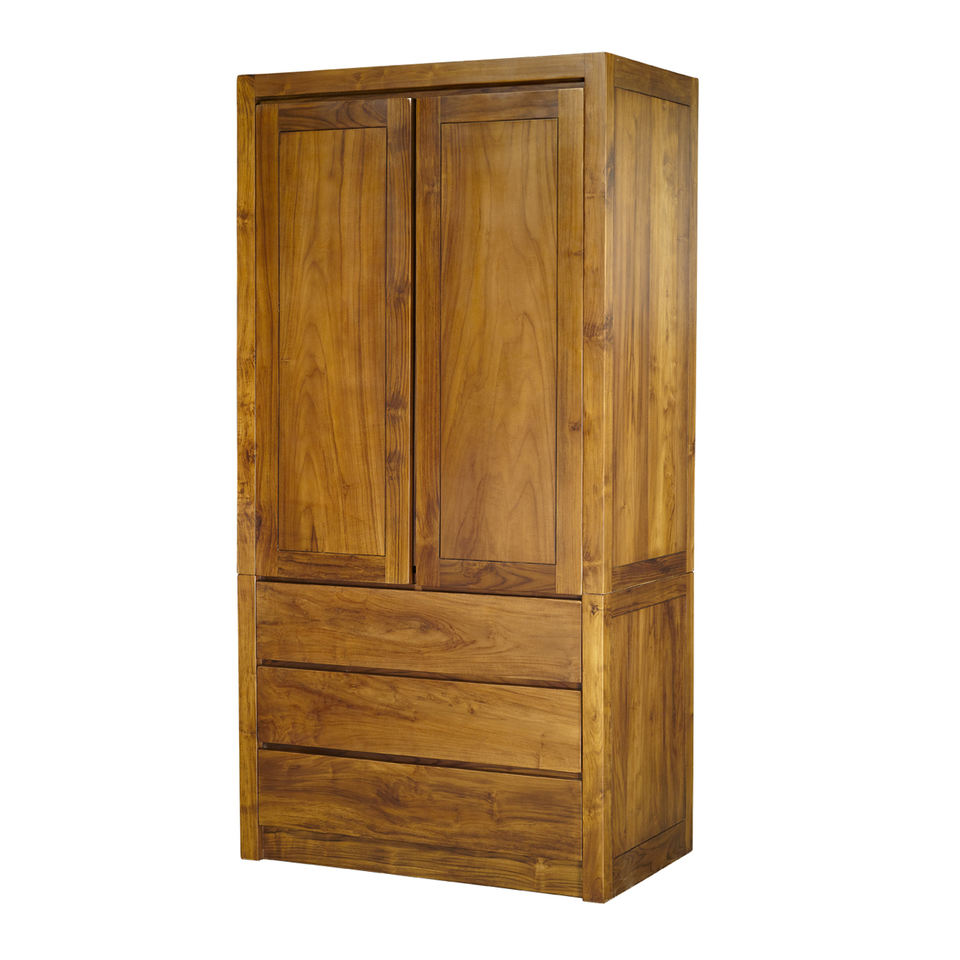 Modern Simplicity Style with 2 Doors 3 Drawers Teak Wardrobe for Bedroom
