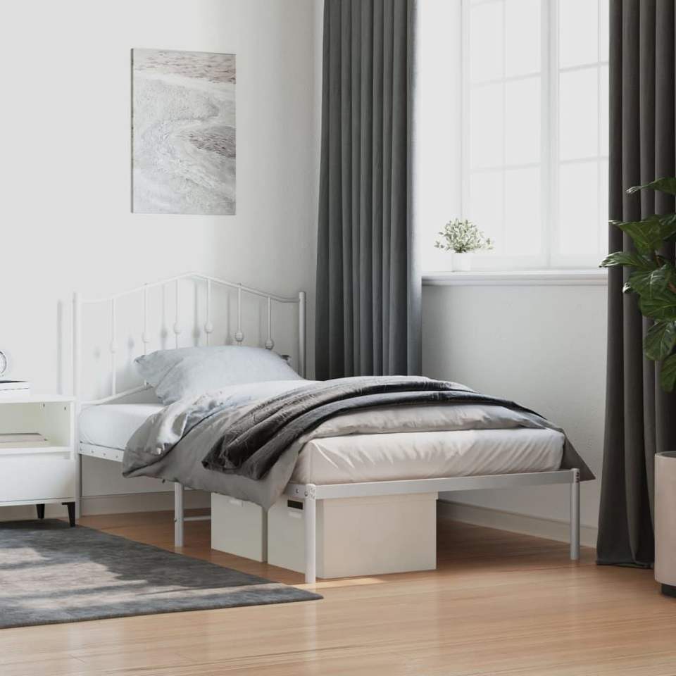 โครงเตียงเดี่ยวทันสมัย สีขาว ดีไซน์เหล็กทรงสี่เหลี่ยม เตียงโลหะ