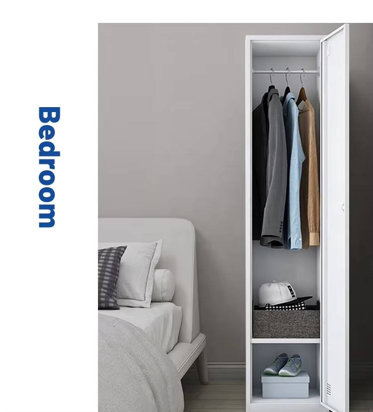 ตู้เสื้อผ้าโลหะบานเดี่ยวทันสมัยสำหรับห้องนอน ตู้เก็บเสื้อผ้าแบบขายส่ง พร้อมฟังก์ชั่นปรับระดับได้ เหมาะสำหรับห้องนั่งเล่น