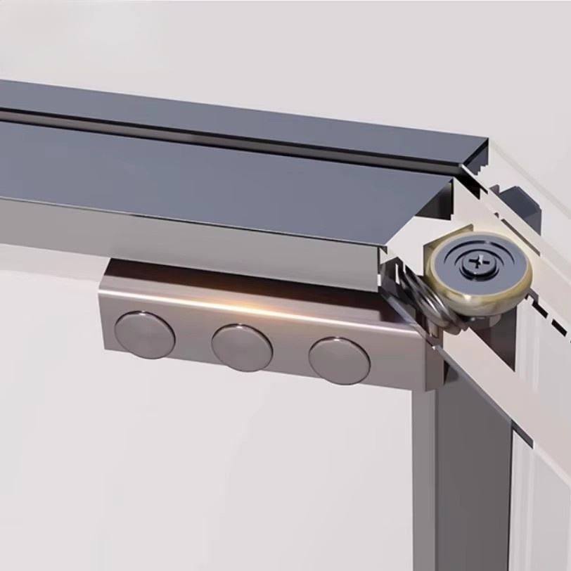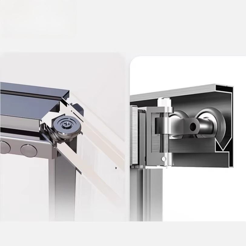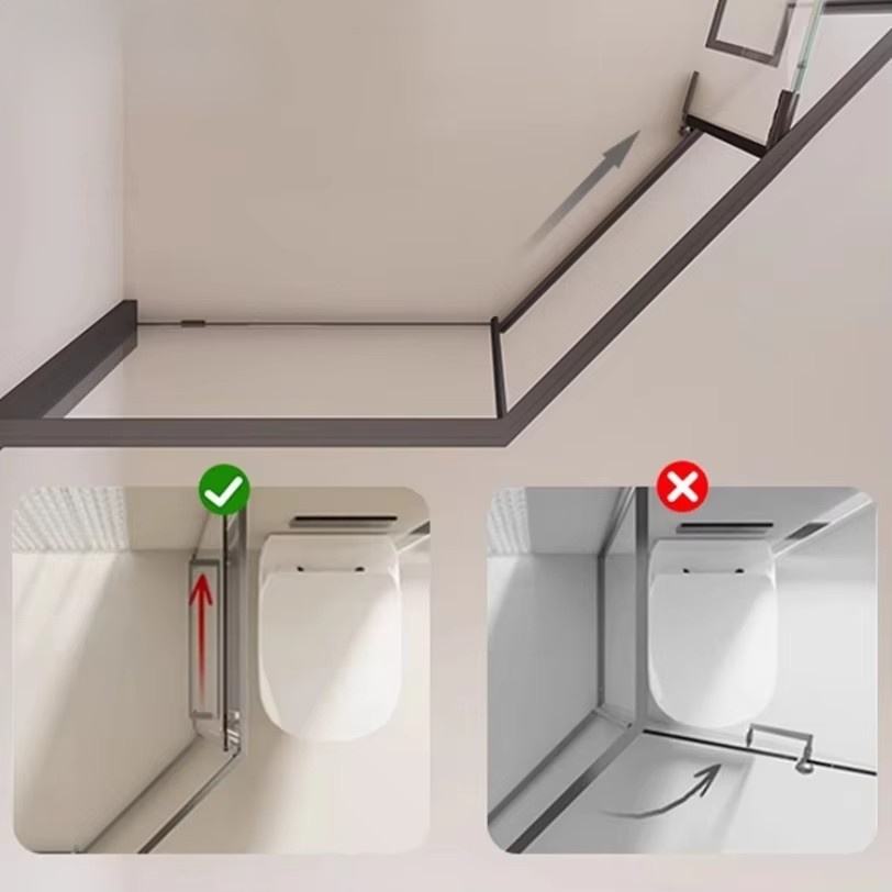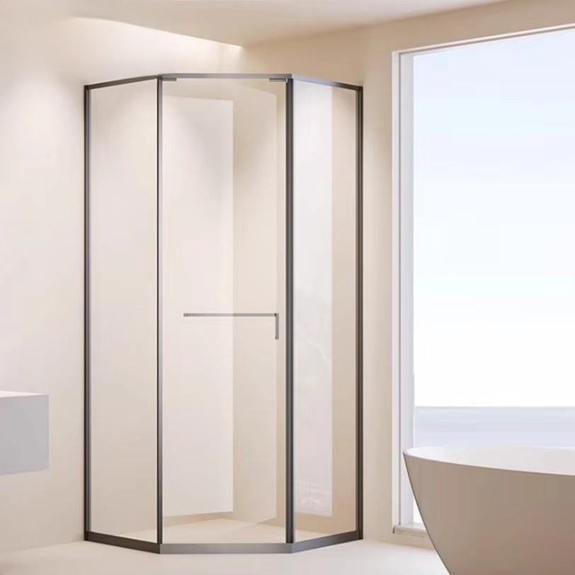 ประตูห้องอาบน้ำแบบบานเลื่อนเดี่ยวไร้กรอบทรงเพชร สแตนเลสกันน้ำ กระจกบานเลื่อน ตกแต่งห้องน้ำเรียบง่ายทันสมัย
