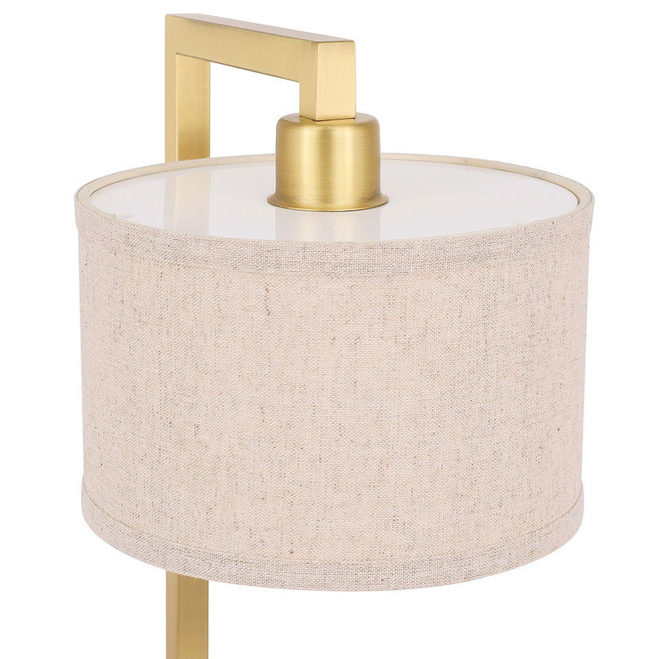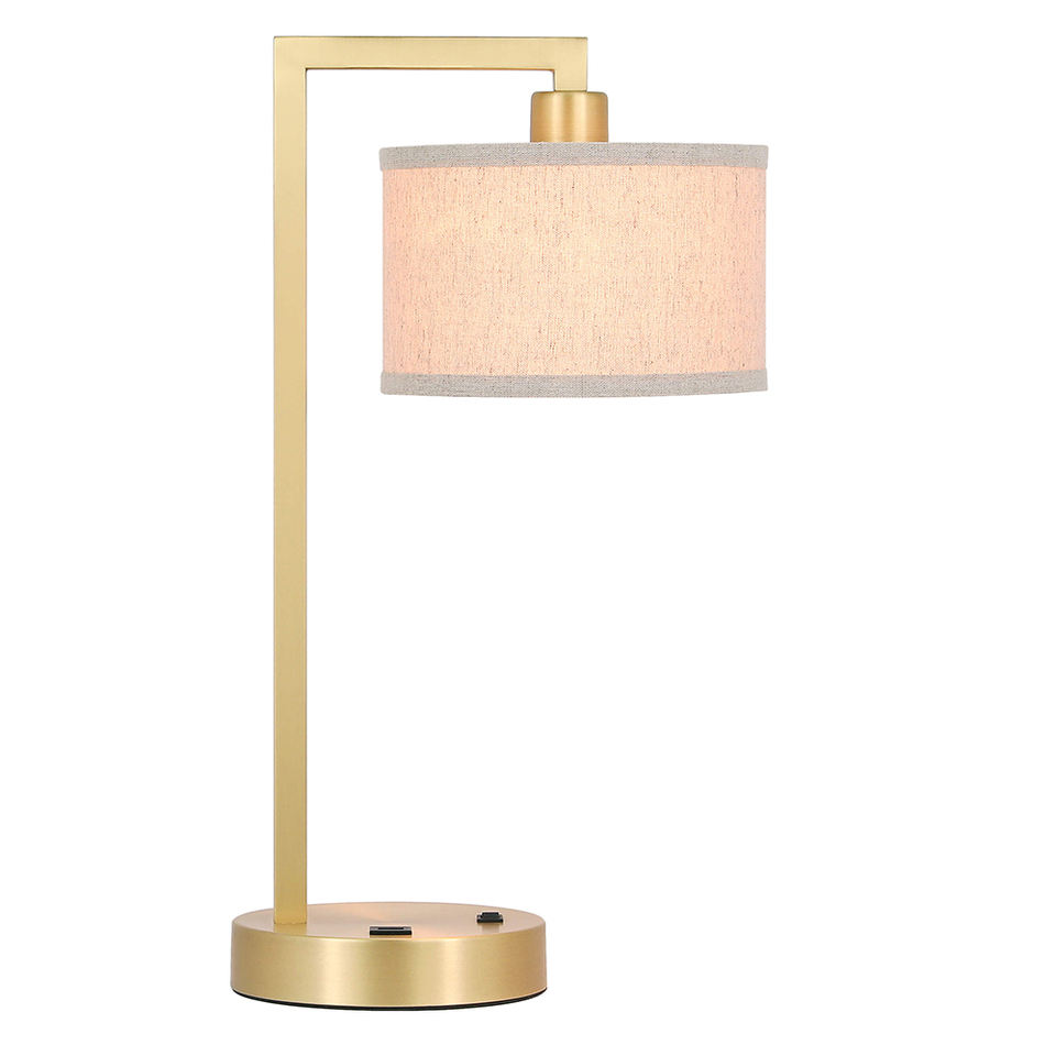 โคมไฟตั้งโต๊ะข้างเตียงแบบโมเดิร์น ทำจากทองเหลืองซาติน พร้อมพอร์ต USB และโคมผ้า สำหรับห้องนอนและสำนักงาน