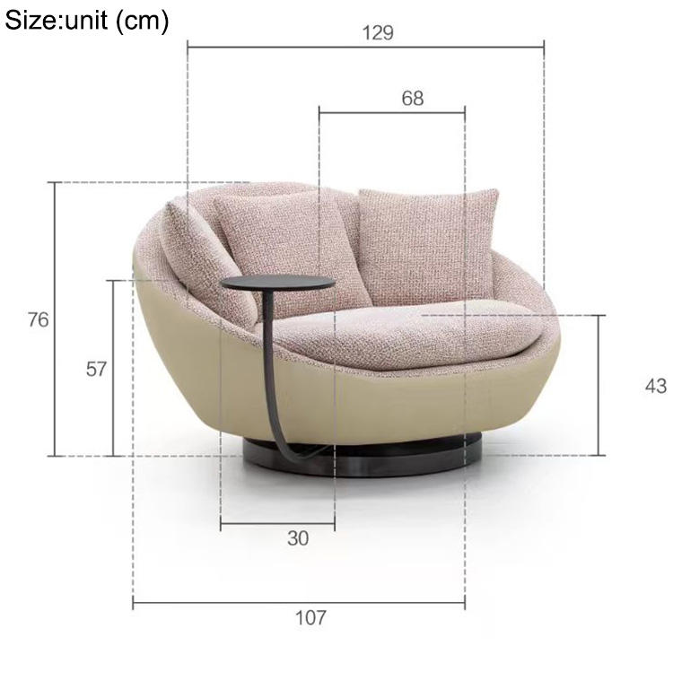 เก้าอี้โซฟาเดี่ยวทันสมัยพร้อมโต๊ะ เก้าอี้นั่งเล่นในห้องนั่งเล่น เก้าอี้ระเบียงทรงกลมหมุนได้ เก้าอี้พักผ่อนสำหรับห้องนอนในวิลล่า