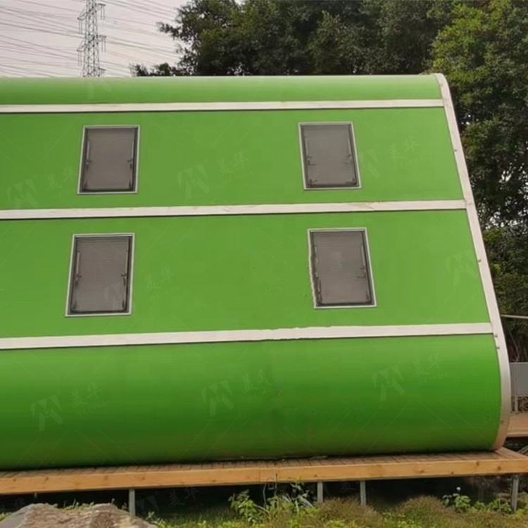 บ้านตู้คอนเทนเนอร์สำเร็จรูปชั้นเดียวทันสมัยพร้อมโครงสร้างเหล็กสามเหลี่ยมบ้านพร้อมแคปซูลอเนกประสงค์