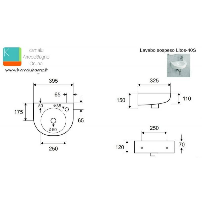 อ่างล้างหน้าลายครามขนาดเล็ก40ซม. Litos-40S kamalu สำหรับใช้ในบ้านสุขาภิบาลโรงแรมห้องน้ำ