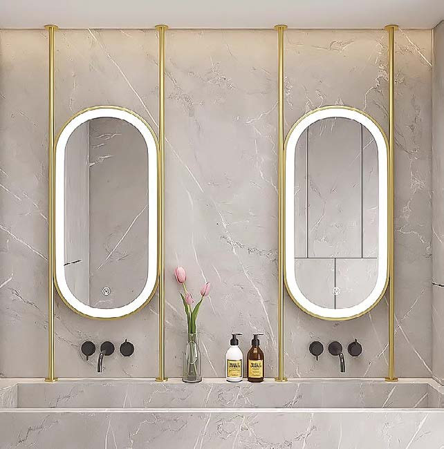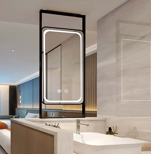 กระจกแต่งหน้าติดผนัง LED อัจฉริยะทันสมัยพร้อมกรอบอะคริลิควัสดุกระจกโต๊ะเครื่องแป้งในห้องน้ำ