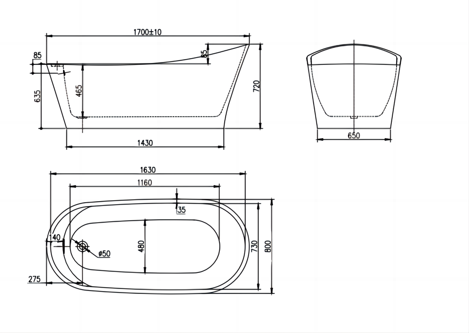 ขนาดเป็นมิลลิเมตร:1700L x 800W X 720H mm