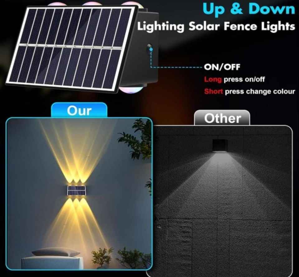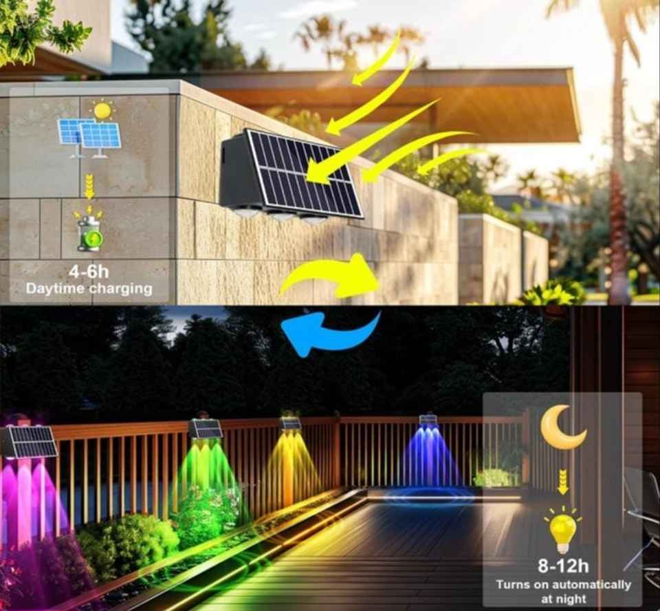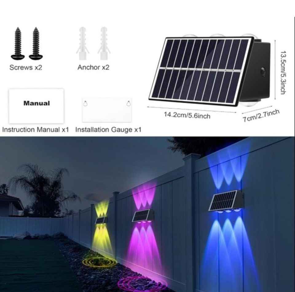 ไฟรั้วโซลาร์เซลล์ทันสมัยสำหรับภายนอกอาคาร กันน้ำ ไฟ LED RGB สำหรับสระว่ายน้ำ ราวระเบียง ระเบียงบ้าน