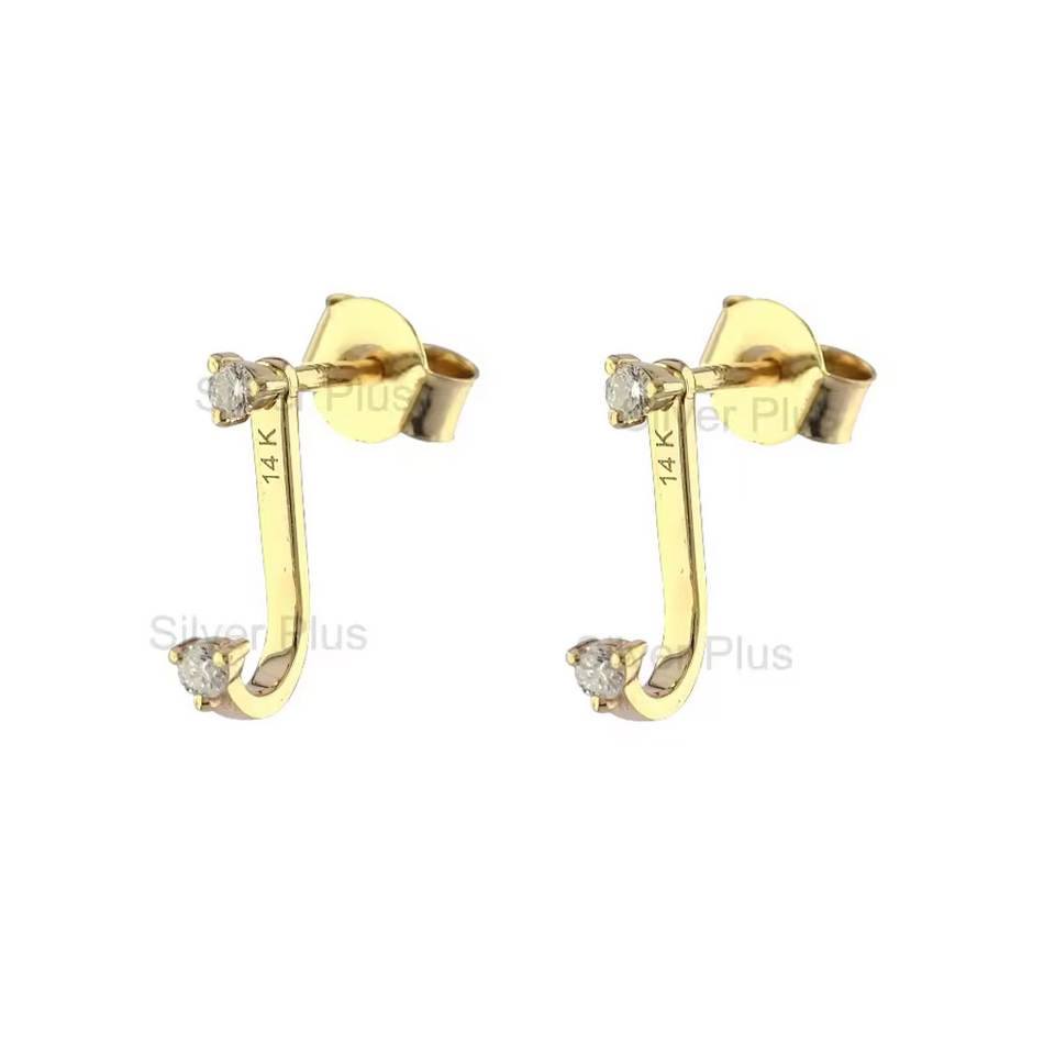 Modern Solid 14K Yellow Gold Ear Stud Earrings Genuine 0.14 C. Brilliant Cut Diamond Earrings for Sale