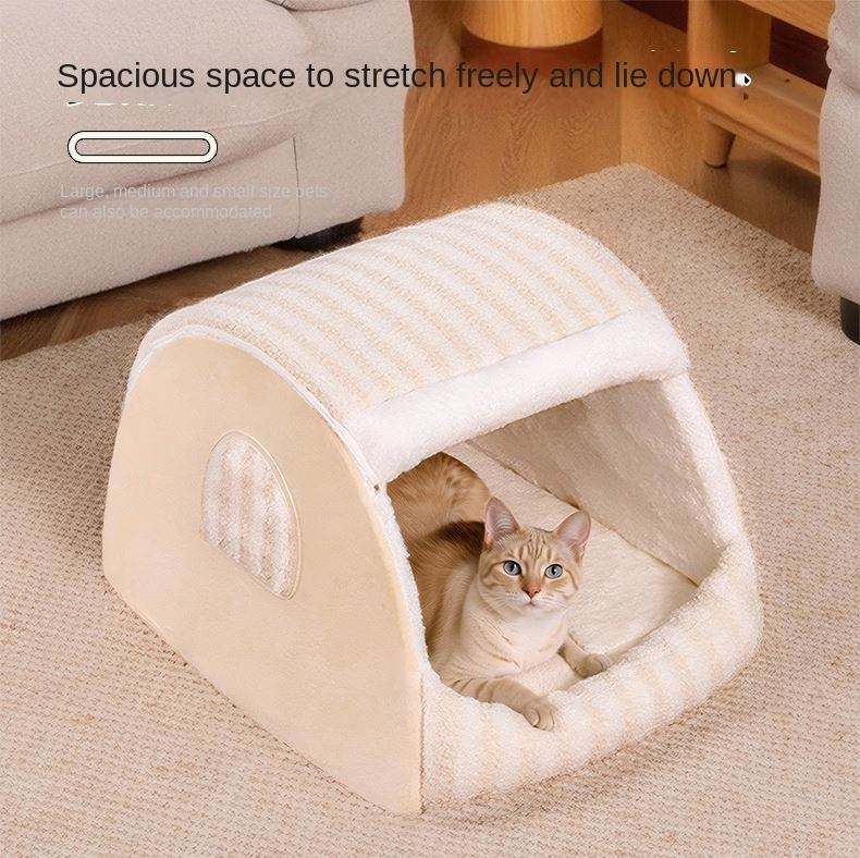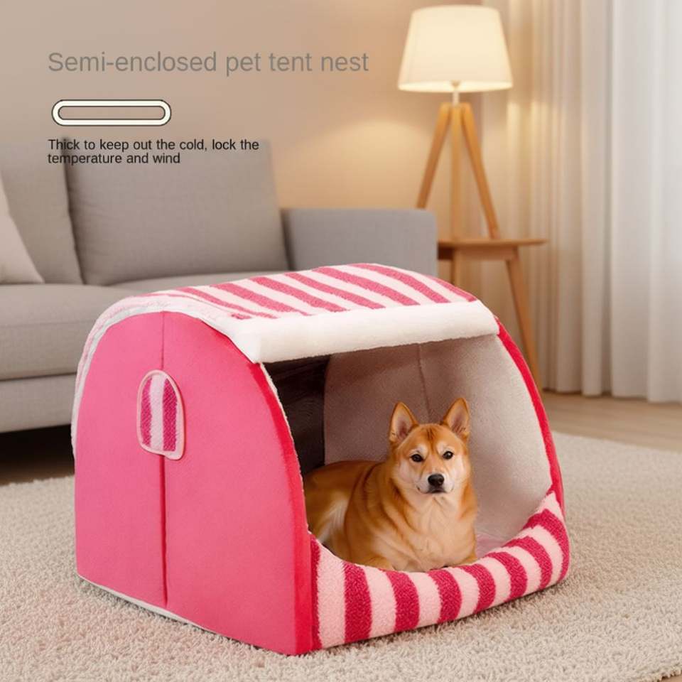เต็นท์นอนสัตว์เลี้ยงแบบกำมะหยี่สำหรับฤดูหนาว รุ่นทันสมัย เป็นมิตรกับสิ่งแวดล้อม ปิดได้บางส่วน ถอดประกอบได้ สำหรับสุนัขและแมวทุกขนาด