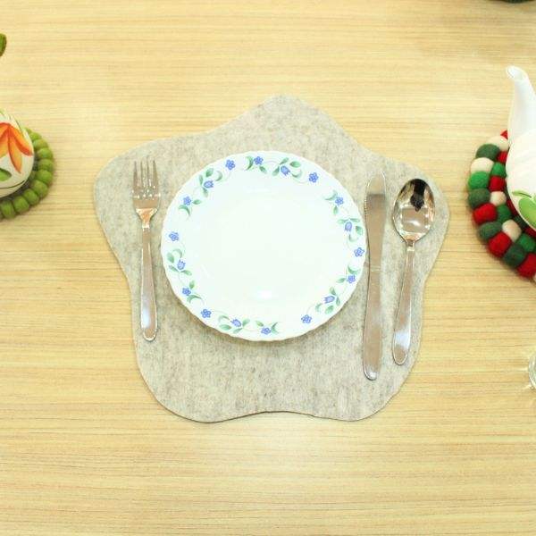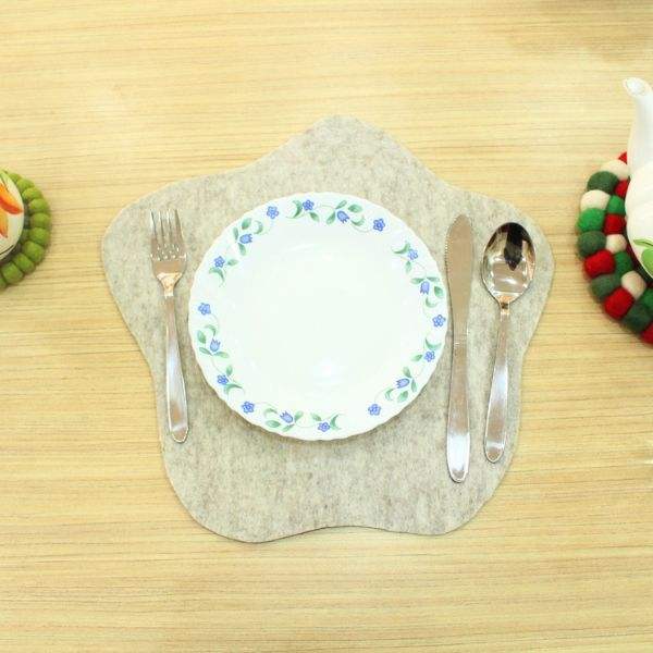 แผ่นรองจานทำมือจากผ้าสักหลาดขนสัตว์ออร์แกนิคคุณภาพสูง ทันสมัย เป็นมิตรกับสิ่งแวดล้อม ขนาดปรับแต่งได้ สำหรับตกแต่งโต๊ะอาหารที่บ้านและโรงแรม