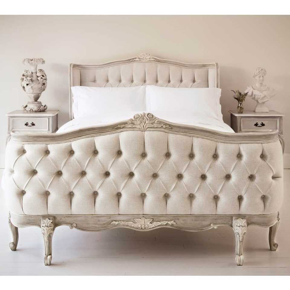 เตียงนอนทรงสเลจหุ้มผ้าหุ้มเบาะไม้มะฮอกกานีแท้สไตล์โมเดิร์น ตกแต่งสีทองโบราณ แกะสลักด้วยมือ ดีไซน์เตียงนุ่มสบาย-ขนาดทวิน/แคลิฟอร์เนียคิง