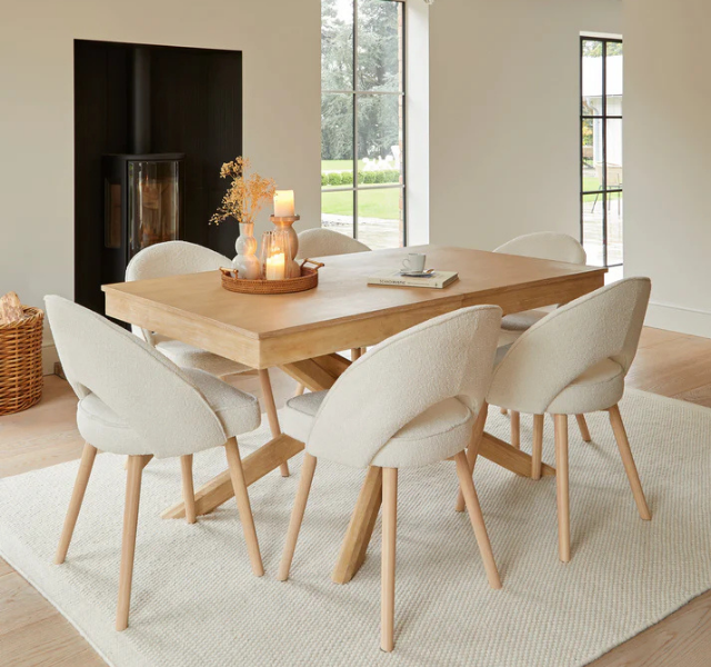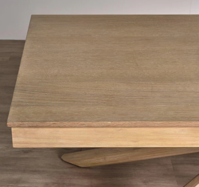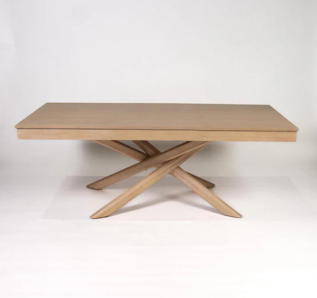 ชุดโต๊ะรับประทานอาหารทรงสี่เหลี่ยมทำจากไม้มินดีแบบทันสมัย พร้อมเก้าอี้หุ้มเบาะ ฐานรูปตัว X ดีไซน์เรียบง่าย เหมาะสำหรับโรงแรมและวิลล่า