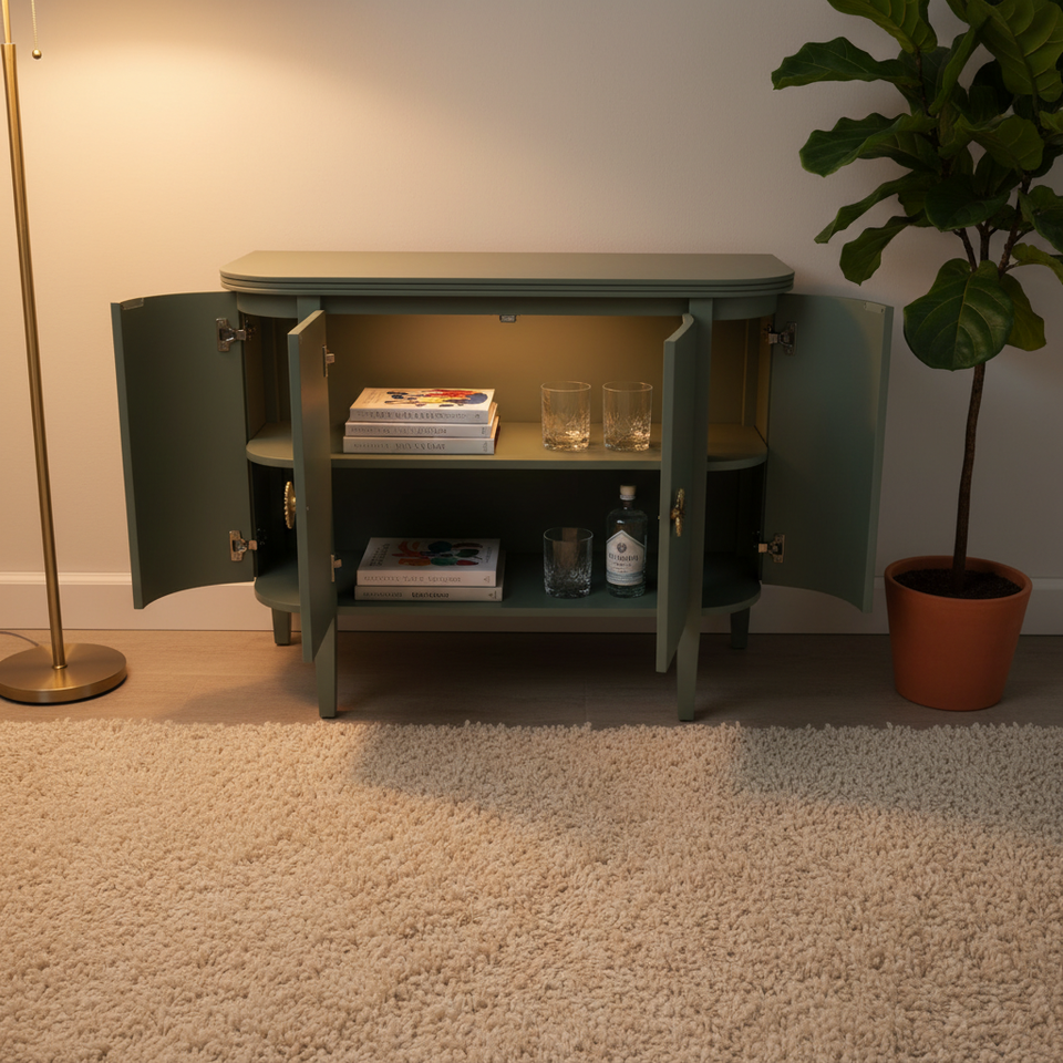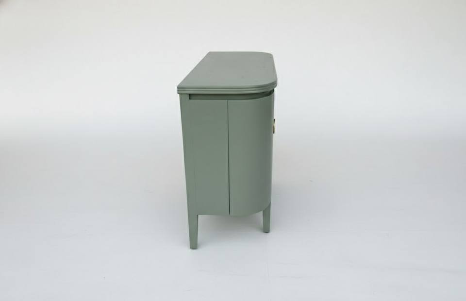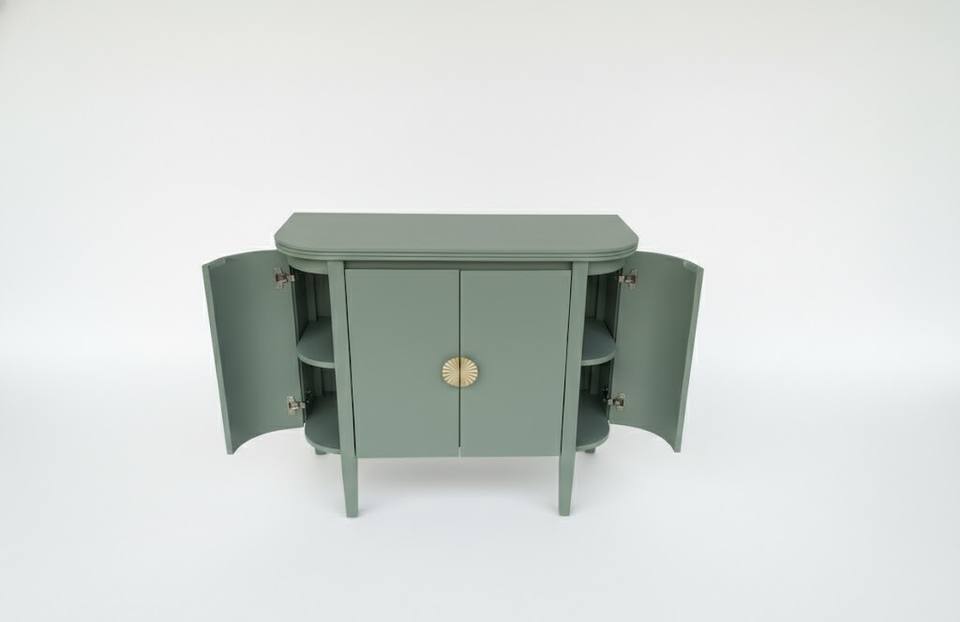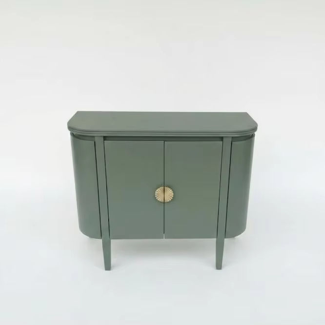 ตู้คอนโซลข้างโค้งไม้โอ๊คแข็งแบบโมเดิร์น ตู้เก็บของขนาดกะทัดรัด ตู้ข้างทรงโค้ง สีเขียวรักษ์โลก