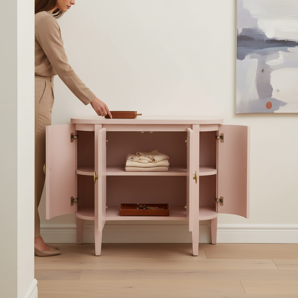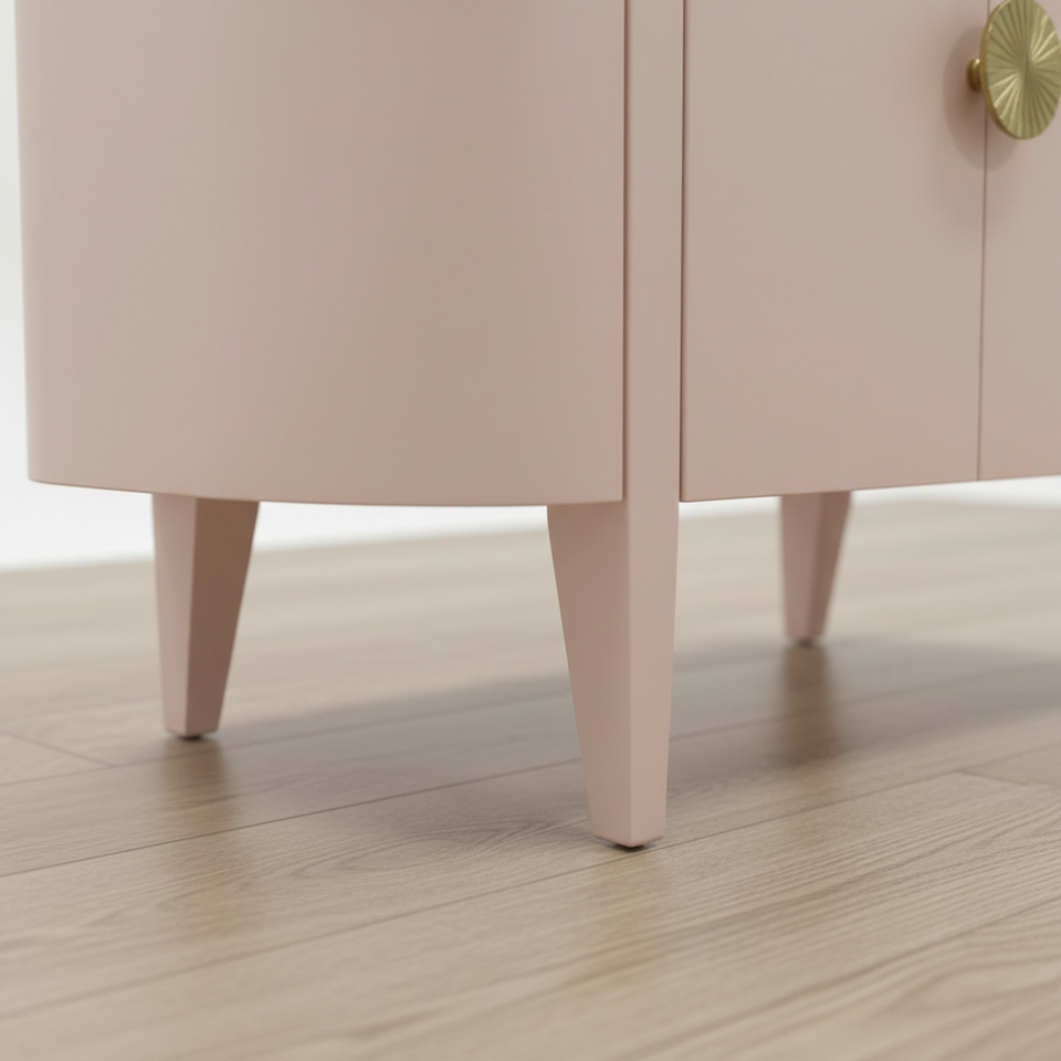 ตู้เก็บของไม้โอ๊คแข็งทรงโค้งดีไซน์มินิมอล ตู้ข้างทรงโค้งขนาดกะทัดรัด สีขาว เป็นมิตรกับสิ่งแวดล้อม