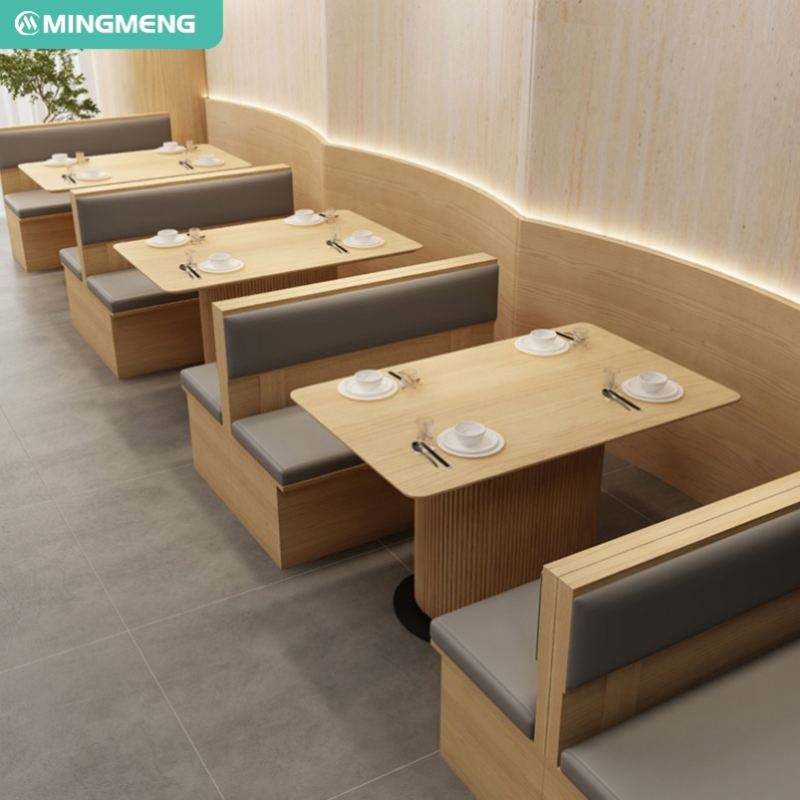 ชุดเฟอร์นิเจอร์ร้านอาหารคาเฟ่หนัง PU แข็งแบบทันสมัยโต๊ะไม้แบบบูธเก้าอี้วิลล่าสำหรับใช้ในโซฟา