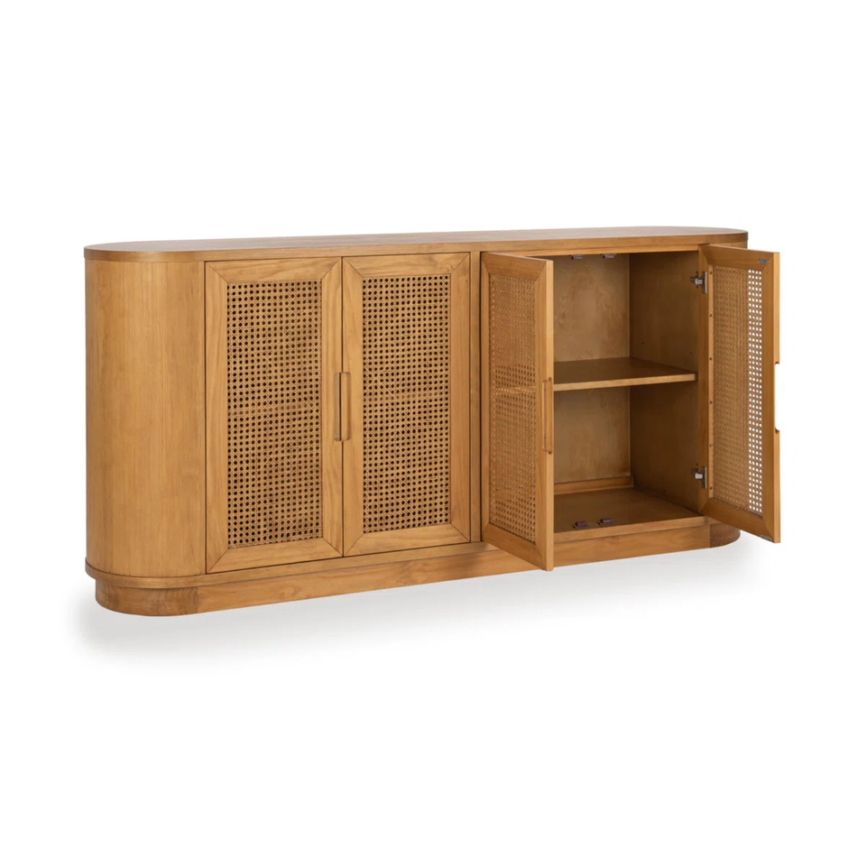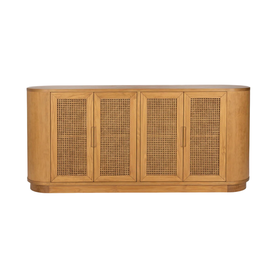 ตู้บุฟเฟ่ต์ไม้สักแท้สไตล์โมเดิร์น พร้อมบานประตูหวายธรรมชาติ สำหรับห้องรับประทานอาหาร โรงแรม ร้านอาหาร เฟอร์นิเจอร์จัดเก็บ