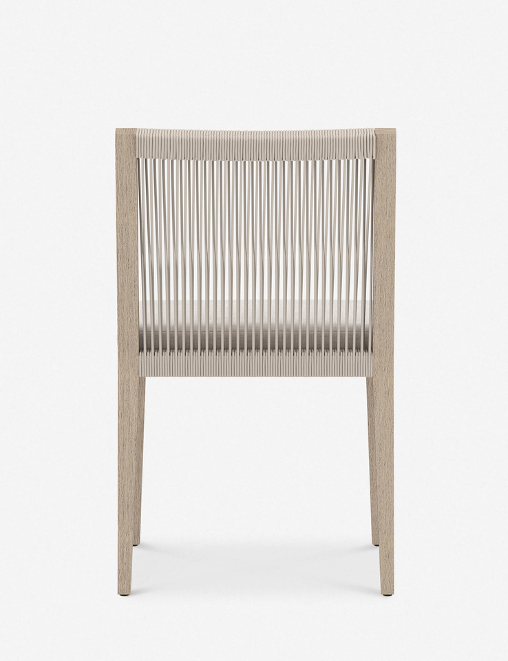 เก้าอี้ไม้สักกลางแจ้งที่ทันสมัยพร้อมพนักพิงแบบมีสายทำด้วยมือทนทานหุ้มเบาะสำหรับวิลล่าและห้องนั่งเล่น