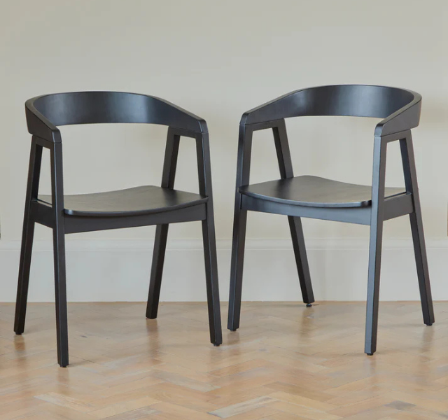 ชุดโต๊ะรับประทานอาหารทรงวงรีสีดำไม้สักแท้สไตล์โมเดิร์น พร้อมเก้าอี้ไม้แบบมินิมอลขาไขว้ 6 ที่นั่ง สำหรับห้องรับประทานอาหาร วิลล่า โรงแรม