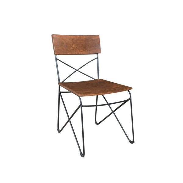 เก้าอี้ไม้สักเนื้อแข็งทันสมัยสำหรับรับประทานอาหารพร้อมโครงเหล็กเฟอร์นิเจอร์ภายในบ้านทั้งในและนอกบ้านสำหรับอพาร์ทเมนต์และวิลล่า