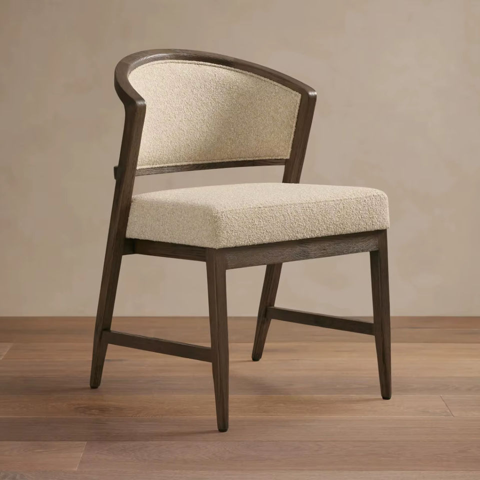 เก้าอี้ทานข้าวไม้สักแท้ทรงโค้งทันสมัย เป็นมิตรกับสิ่งแวดล้อม น้ำหนักเบา คุณภาพพรีเมียม เหมาะสำหรับร้านอาหาร โรงแรม และโครงการตกแต่งภายใน