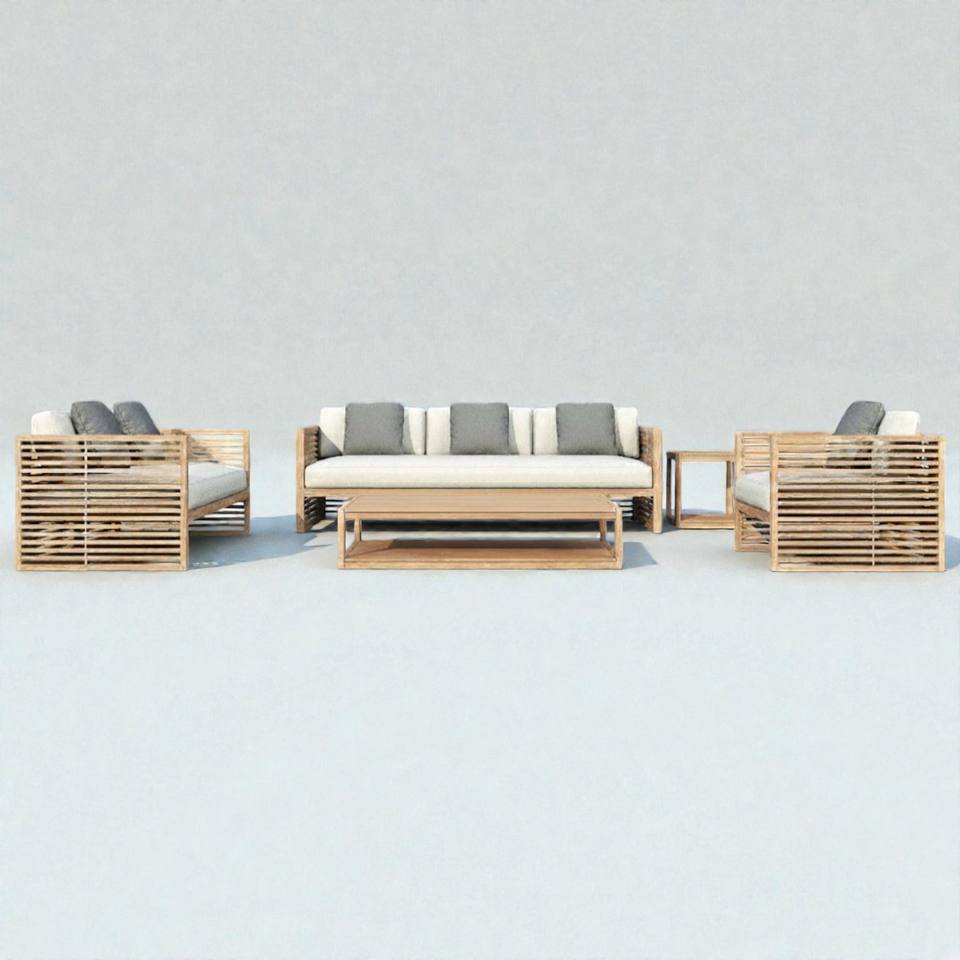 โซฟาเดี่ยวไม้สักแท้สำหรับใช้งานภายนอกสไตล์โมเดิร์น