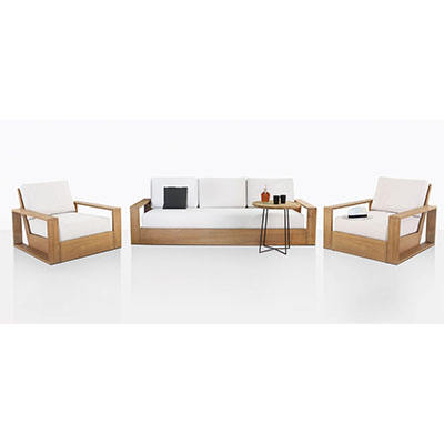 ชุดโซฟาไม้สักแท้สำหรับกลางแจ้ง ดีไซน์ทันสมัย คุณภาพสูง สีธรรมชาติ พร้อมเบาะกันแดด เหมาะสำหรับใช้ในสวนหรือโรงแรม