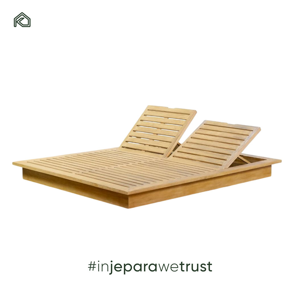 เตียงอาบแดดไม้สักแท้แบบพกพาสำหรับสวน วิลล่า หรือกลางแจ้ง ทนทานทุกสภาพอากาศ พร้อมเบาะสีกากี