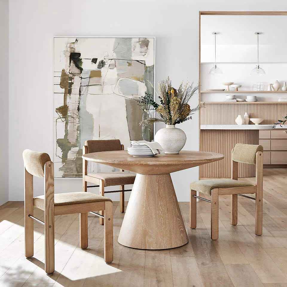 โต๊ะอาหารทรงกลมไม้สักแท้สไตล์โมเดิร์นพร้อมฐานทรงแท่ง เฟอร์นิเจอร์หรูหราสไตล์ร่วมสมัยสำหรับโครงการโรงแรมและวิลล่า