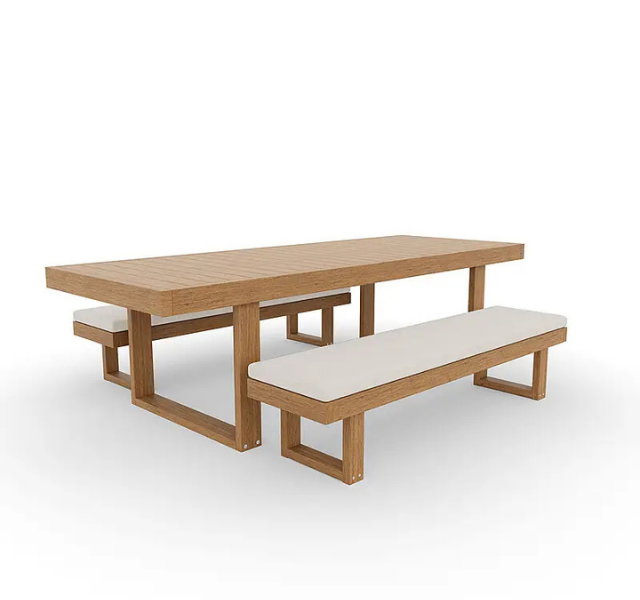 ชุดโต๊ะปิกนิกไม้สักแท้ทันสมัยสำหรับกลางแจ้ง พร้อมเบาะรองนั่งกันน้ำ เป็นมิตรกับสิ่งแวดล้อม สำหรับ 6 ที่นั่ง เหมาะสำหรับโรงแรมและสวน
